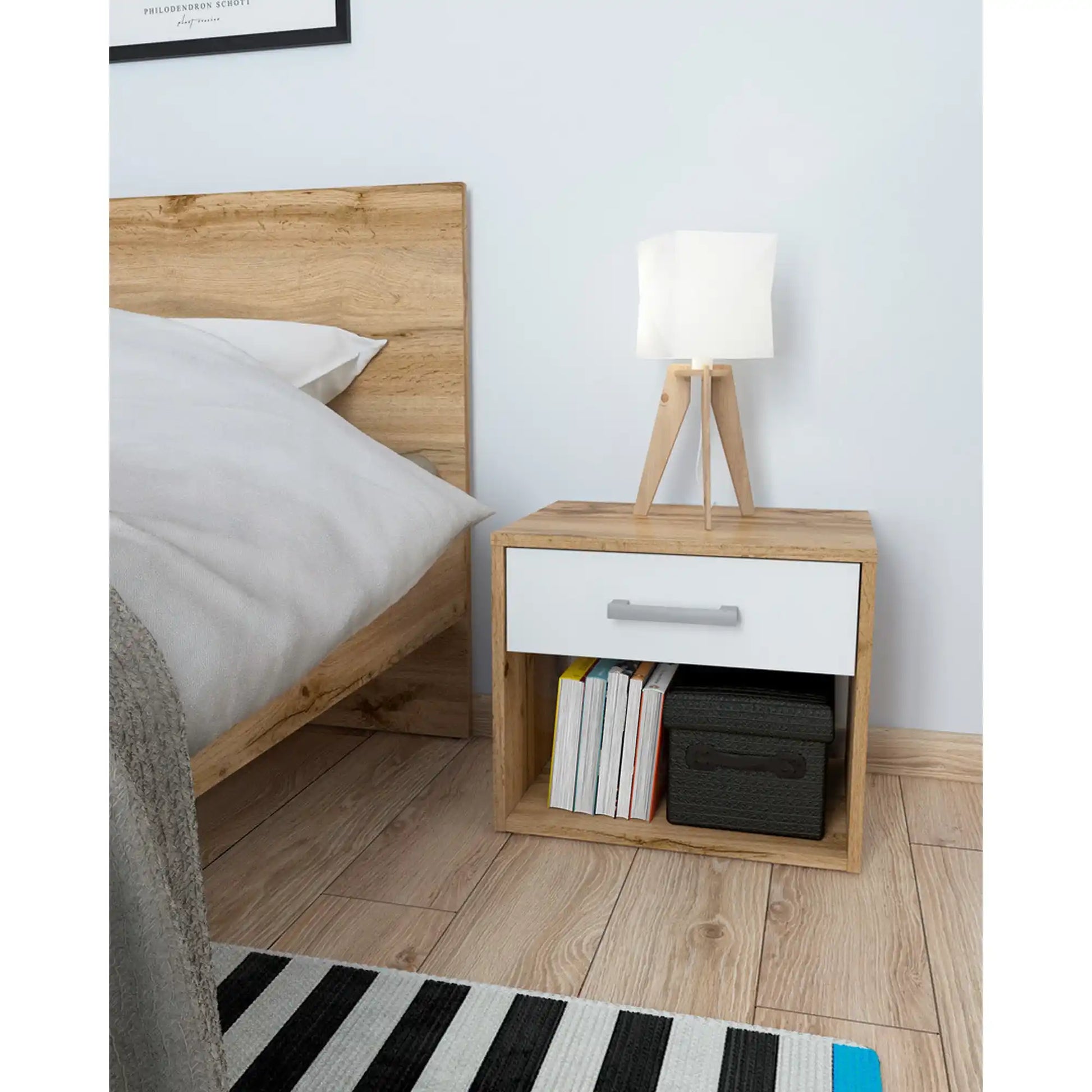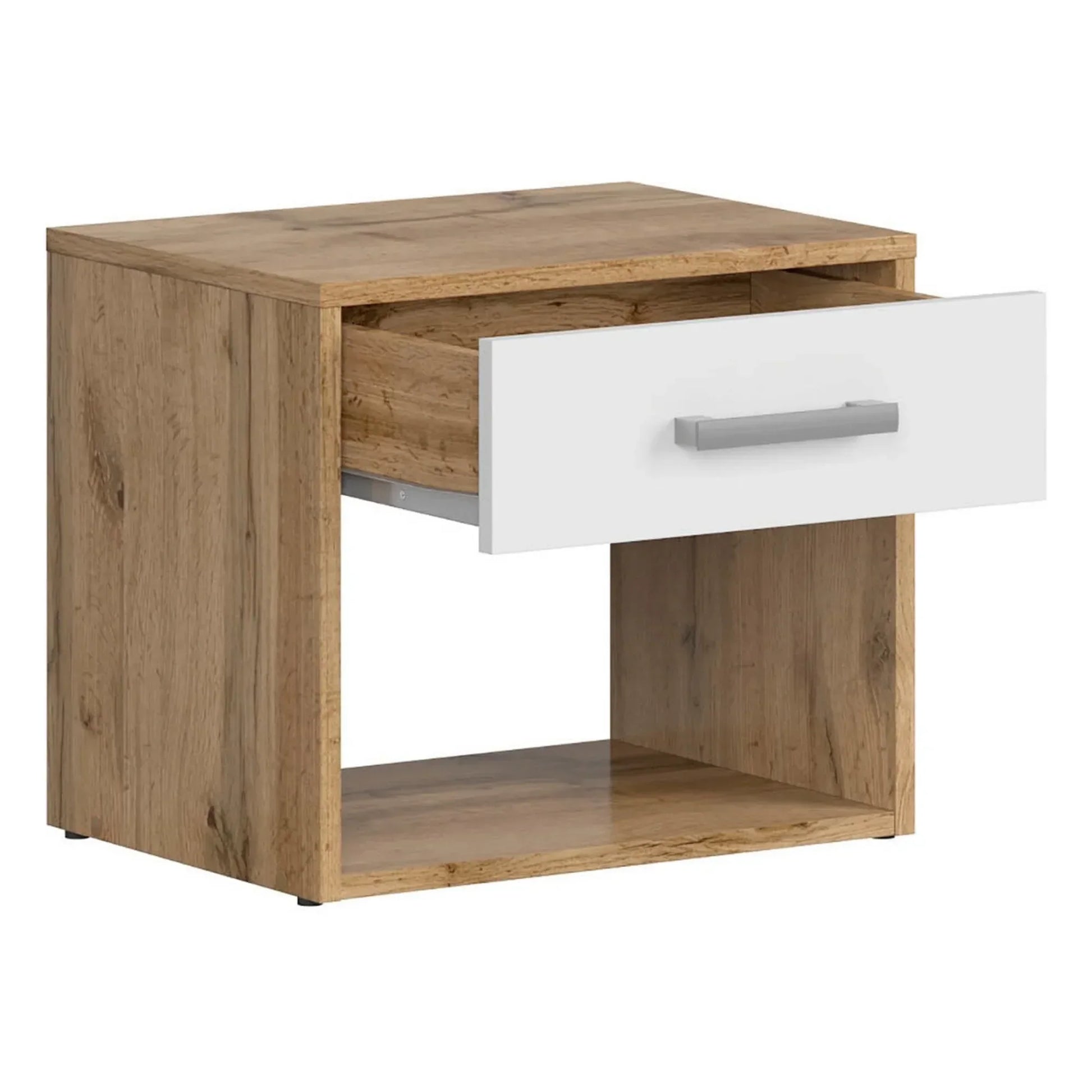 NOPTIERA BERGEN OCN-28958, STEJAR WOTAN/ALB, este alegerea practică pentru spațiul tău de mobilat. Modern și funcțional, cu finisaje rezistente, se integrează ușor in orice decor. Beneficiezi de Preț Mic Zilnic, Livrare Rapidă și programul de garanții exclusive OCEAN GARANTAT.