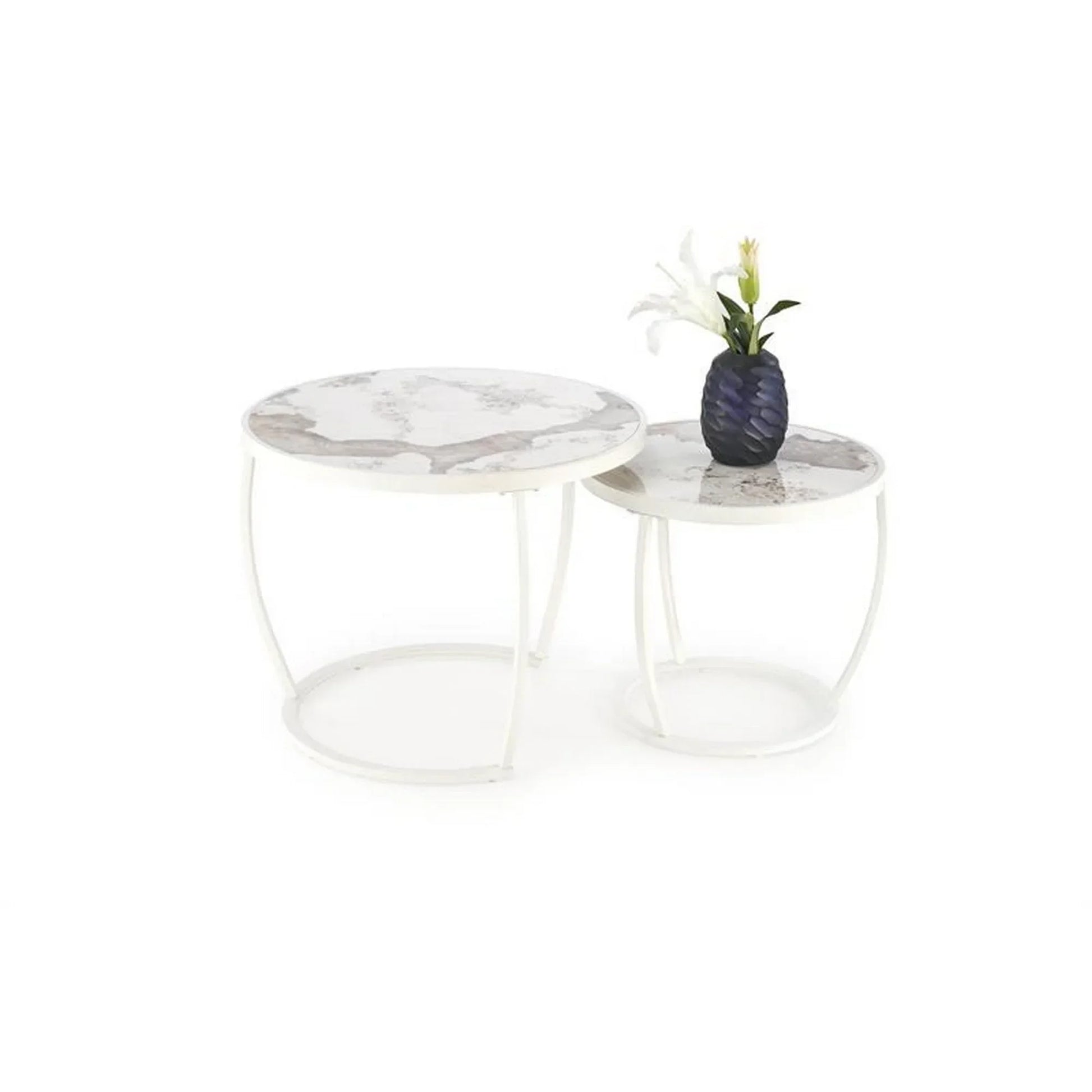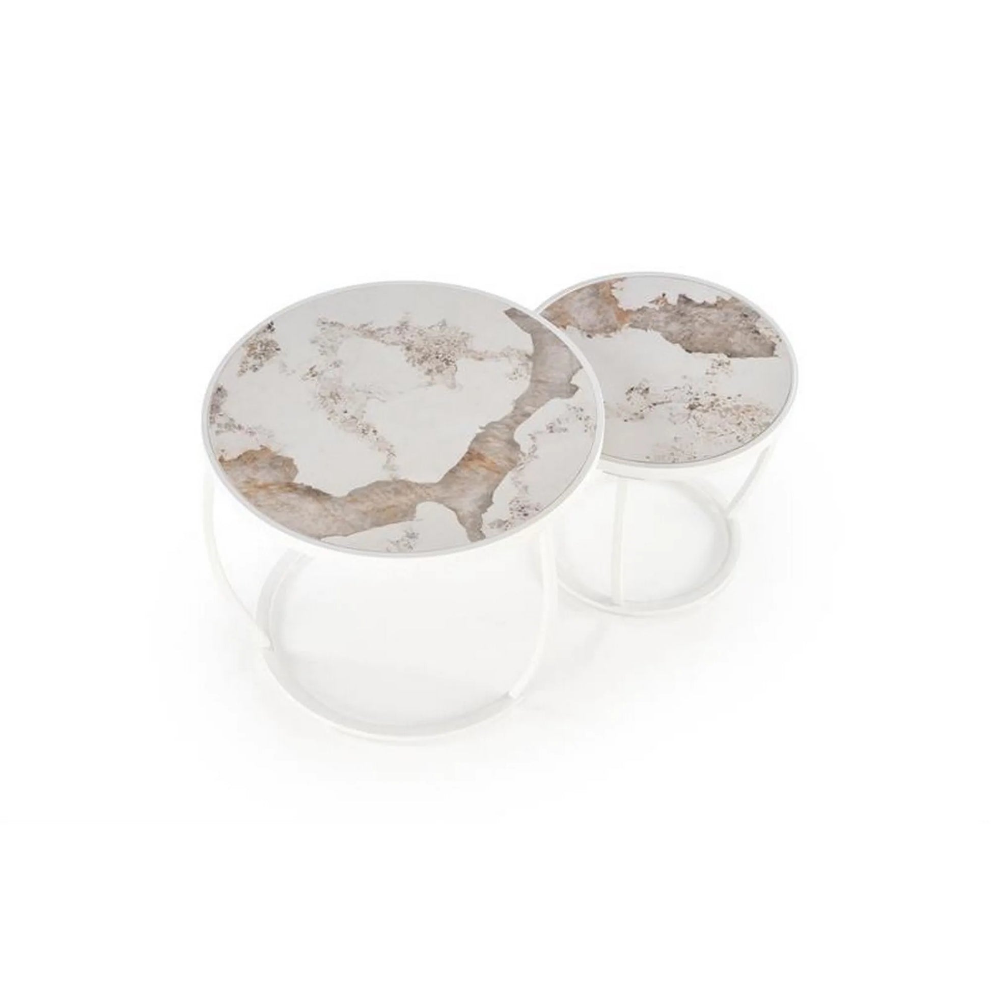 Set 2 masute cafea HOUSTON OCN-37044, bej/marmura/alb