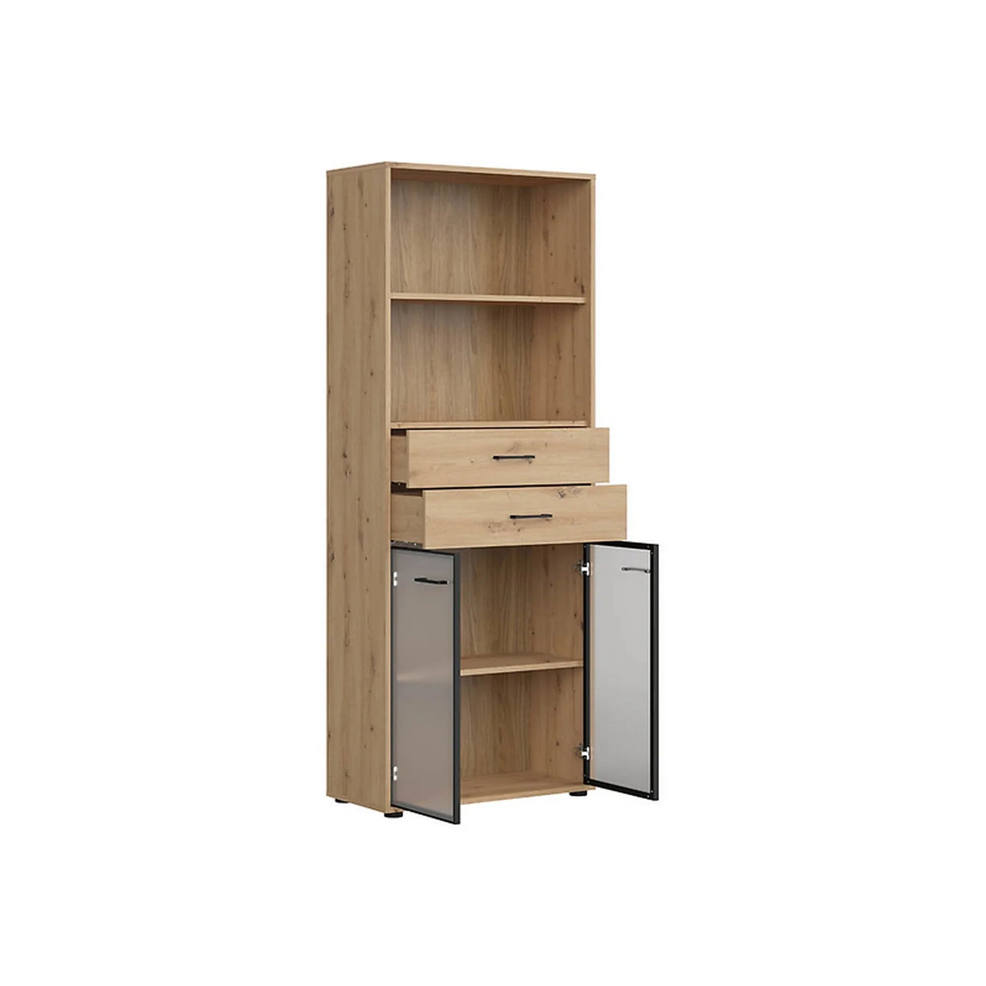 Vitrina BERGEN OCN-28461, stejar artisan/negru fumuriu